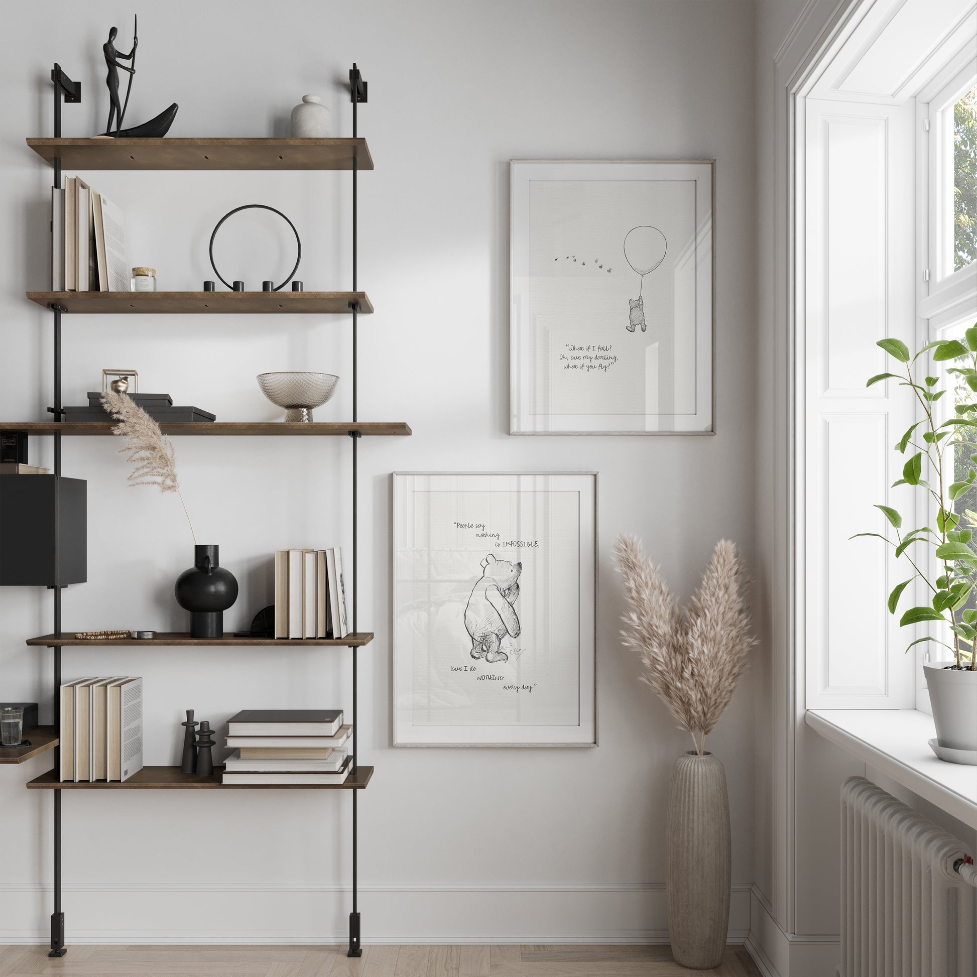 Step back in time to the beloved world of Winnie the Pooh with this meticulously crafted vintage-style black-and-white graphic. The quote, "People say nothing is impossible, but I do NOTHING every day," adds a touch of inspiration, making the poster both fun and motivating. This print is a precisely crafted adaptation of E.H. Shepard's original sketch, redrawn by hand to preserve every delicate detail and nuance, ensuring an authentic and nostalgic feel that will bring back fond memories for children and adults alike.
